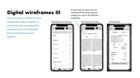 Prompt: Create a user-friendly interface, addressing user problems. Develop wireframes, mockups, and prototypes (both low and high-fidelity) in Figma. Base design decisions on insights from user research, including interviews and usability studies, to ensure an effortless order-for-pickup experience.